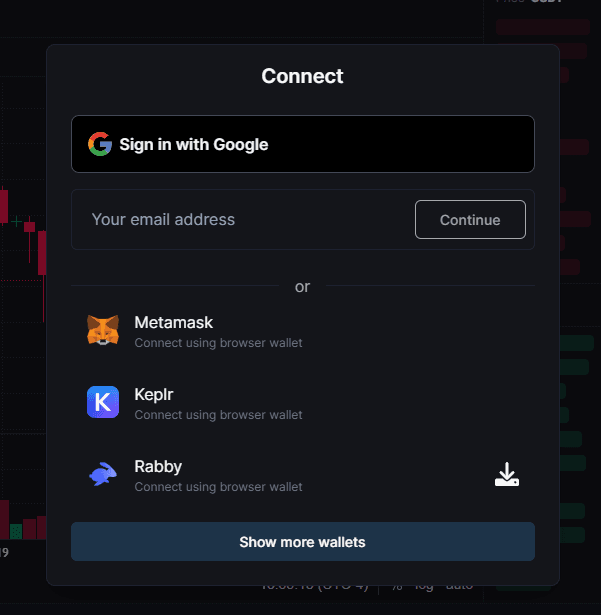 First, go to Helix and connect your wallet. Helix supports two ways of login, you can choose to login with your crypto wallet or login through email.