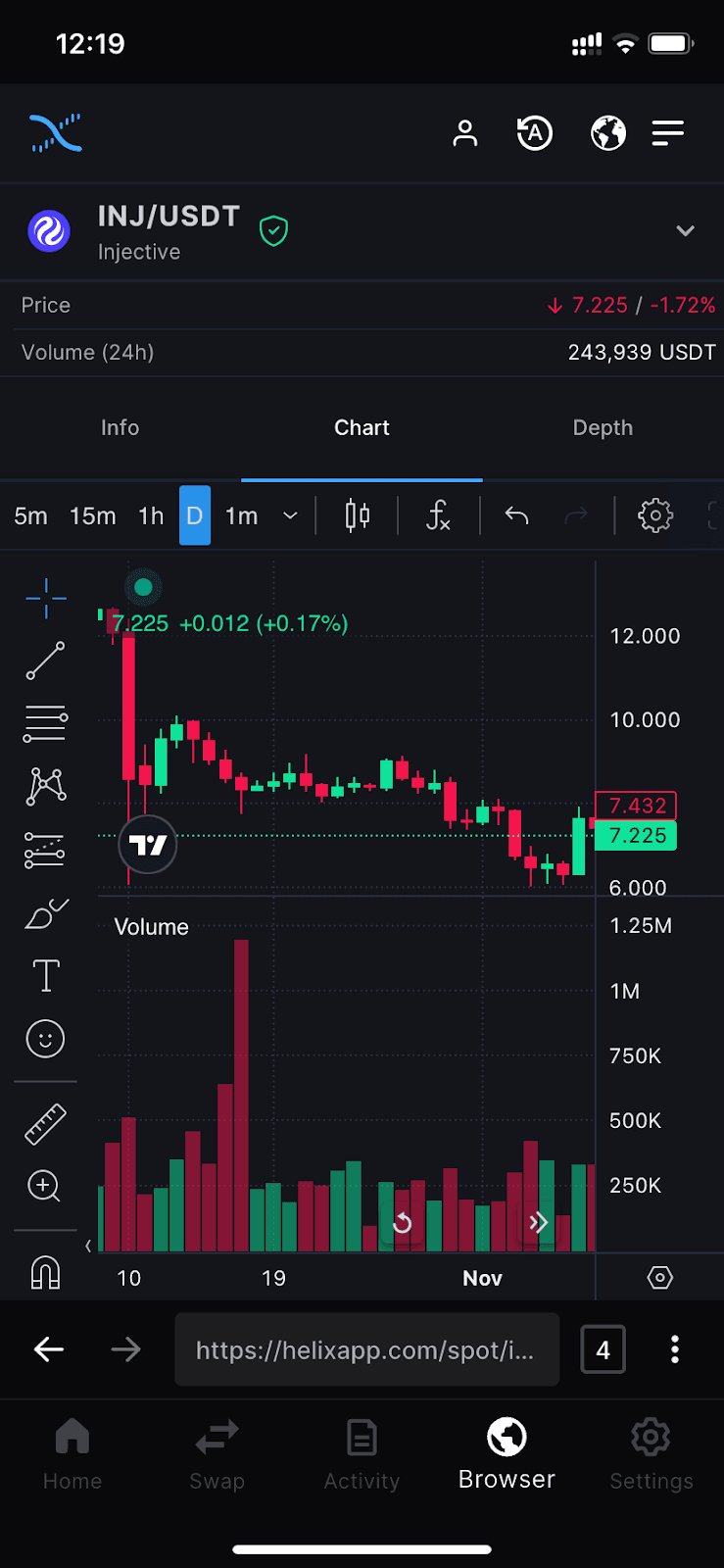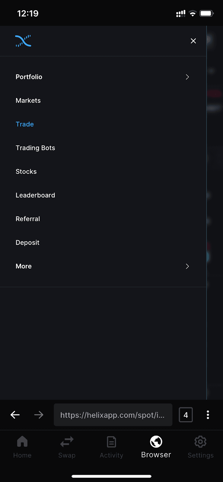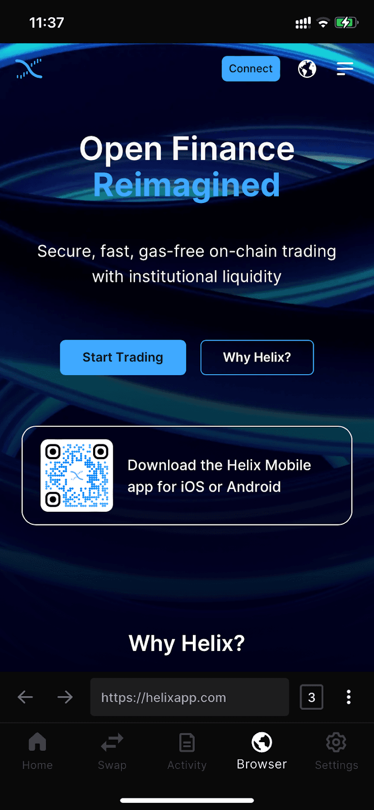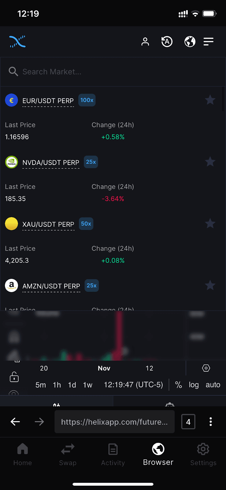 This is where you can access dApps like Helix to trade stocks, commodities, and tokenized equities.