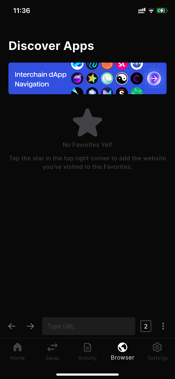 Open Keplr Mobile, and at the bottom navigation bar, tap Browser.