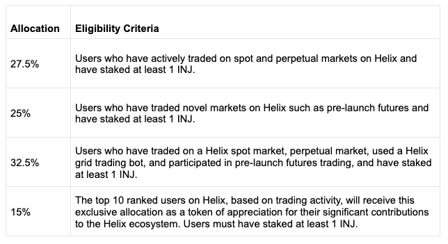 The breakdown of the PYTH airdrop to Helix users is as follows: